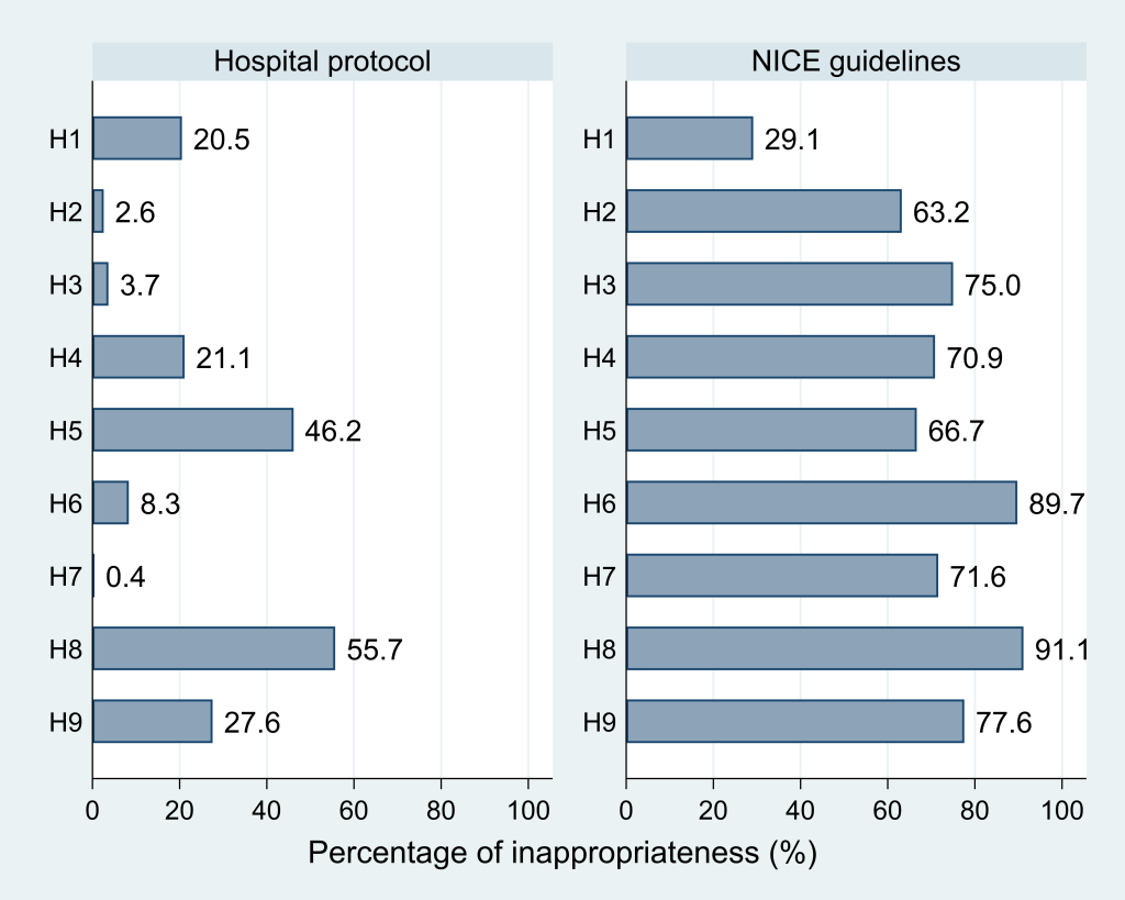 FIGURA 1. Porcentaje de inadecuación según los protocolos hospitalarios y la Guía NICE